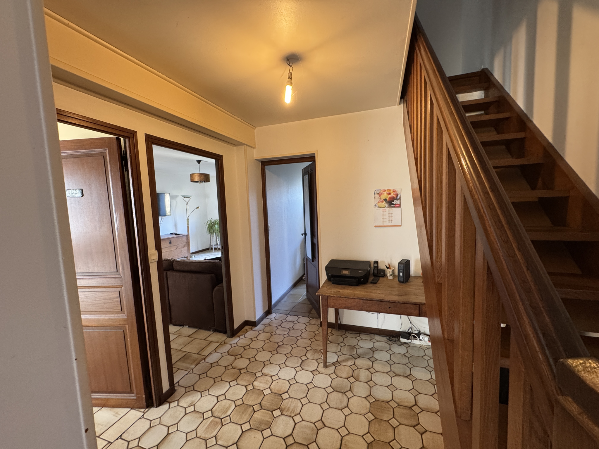 Très bien située dans zone résidentielle tranquille, dans voie sans issue à proximité immédiate des commerces, des écoles et toutes commodités venez découvrir cette maison traditionnelle habitable immédiatement bénéficiant du gros avantage d'une chambre de plain-pied et d'un garage. Le rez de chaussée se compose d'une entrée, d'un agréable séjour (avec cheminée et porte fenêtre donnant sur le jardin), d'une cuisine, d'une chambre de plain-pied (avec porte fenêtre donnant sur jardin) et d'un wc. A l'étage : palier, 3 chambres, salle de bains avec wc. Vous pourrez garer votre voiture dans le garage indépendant et profiterez de l'agréable petit jardin privatif. Assainissement collectif. Les informations sur les risques auxquels ce bien est exposé sont disponibles sur www.georisques.gouv.fr